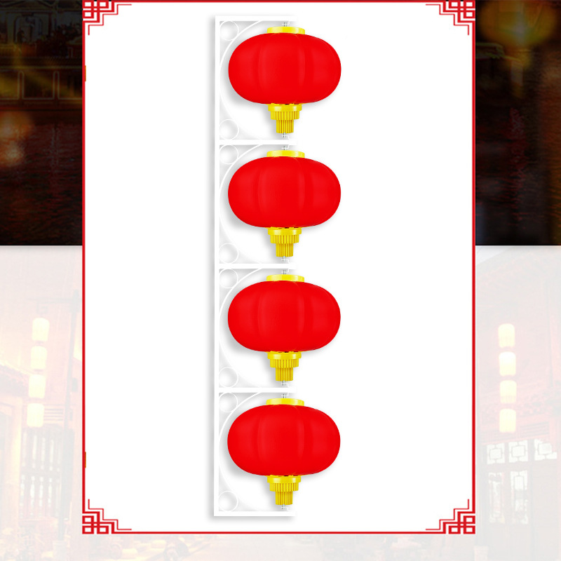磨砂燈籠四連串節(jié)日喜慶大紅燈籠led發(fā)光南瓜燈籠街道路燈桿掛件